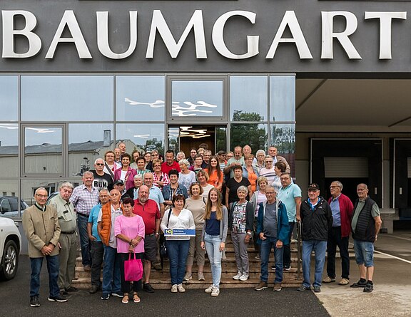 Katharina Baumgartner, Juniorchefin des Betriebes, begleitet von ihrer Familie, bereitete den 51 Besuchern der Ortsgruppe einen sehr herzlichen Empfang. Die von ihr vorgenommene Führung durch den hochmodernen Betrieb, mit einer Lagerkapazität von 18.000.000 Litern Rebensaft, wurde den Seniorinnen und Senioren sehr detailgetreu und abwechslungsreich dargebracht.