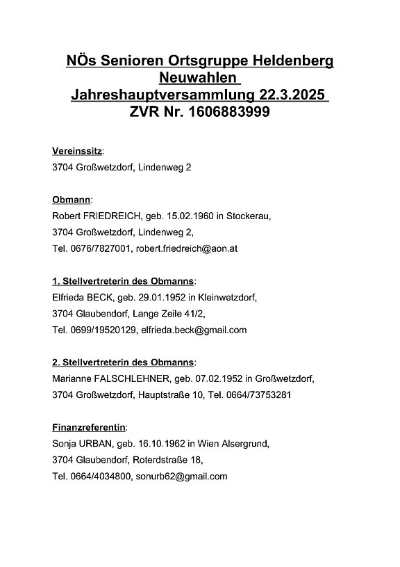 Neuwahl des Vorstandes 2025