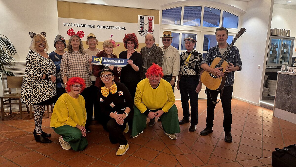Die Mitglieder von NÖs Senioren Schrattenthal erlebten eine vergnügliche Faschingsfeier im Gemeindesaal von Obermarkersdorf. Der Vorstand versorgte mit Speisen und Getränken und bereitete eine Tombola vor. Lustige Sketche von Christa Schrejma und Erika Schmidt trugen zur guten Laune bei. Gerhard Etzler spielte mit seiner Gitarre und lud zum Mitsingen ein. Als besonders freudige Überraschung trat eine Gruppe der Feuerwehrmusik mit Bürgermeister Stefan Schmid unter Obmann Leo Wöber, Stv. Nikolaus Roth auf und spielte schwungvolle Melodien.